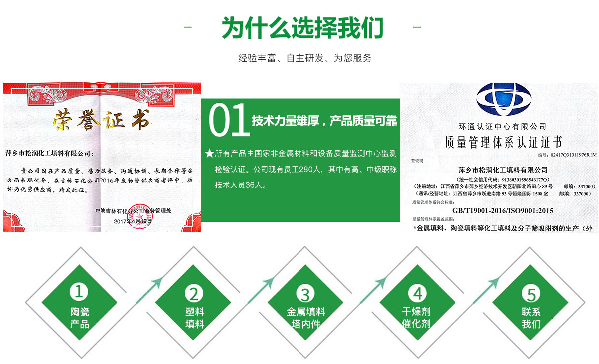 萍鄉(xiāng)市松潤(rùn)化工填料有限公司位于江西省萍鄉(xiāng)市國(guó)家經(jīng)濟(jì)開(kāi)發(fā)區(qū)西區(qū),是專業(yè)生產(chǎn)、經(jīng)營(yíng)陶瓷、聚丙烯、金屬填料、塔內(nèi)件、水處理濾板、濾管、濾料、瓷球、分子篩、催化劑、活性炭、蜂窩陶瓷、瓷質(zhì)耐磨托輥等系列產(chǎn)品的民營(yíng)企業(yè)。所有產(chǎn)品由國(guó)家非金屬材料和設(shè)備質(zhì)量監(jiān)測(cè)中心監(jiān)測(cè)檢驗(yàn)認(rèn)證。公司現(xiàn)有員工280人,其中有高、中級(jí)職稱技術(shù)人員36人。工藝先進(jìn),技術(shù)力量雄厚,產(chǎn)品質(zhì)量可靠,配...